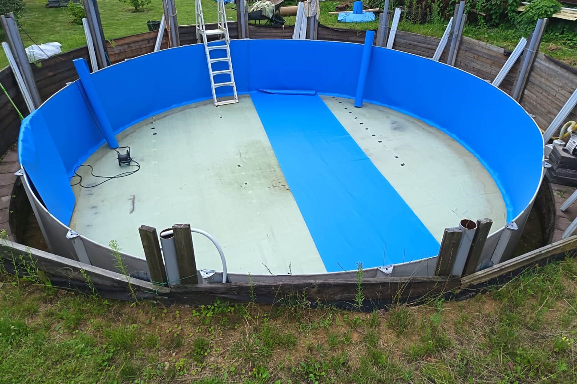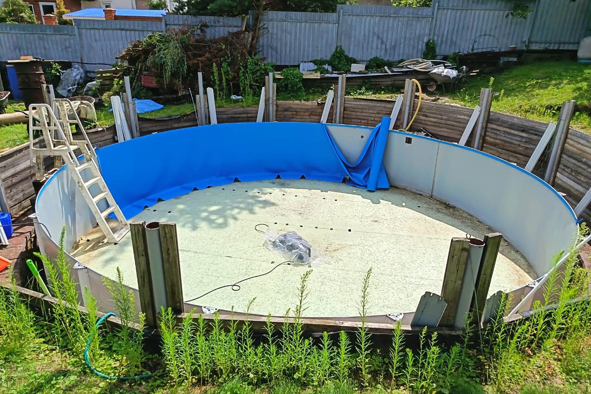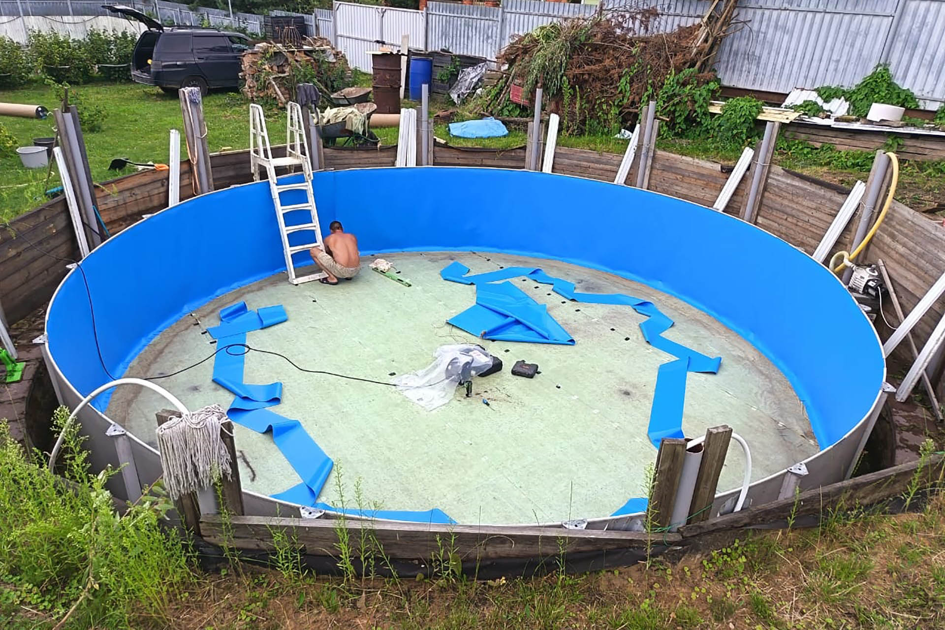 Отделка морозоустойчивого бассейна 7,3х1,32м пленкой ПВХ, синяя Dark Blue Китай FXT007DB (1,65х25м) (Солнечногорский р-н, д. Тимоново)