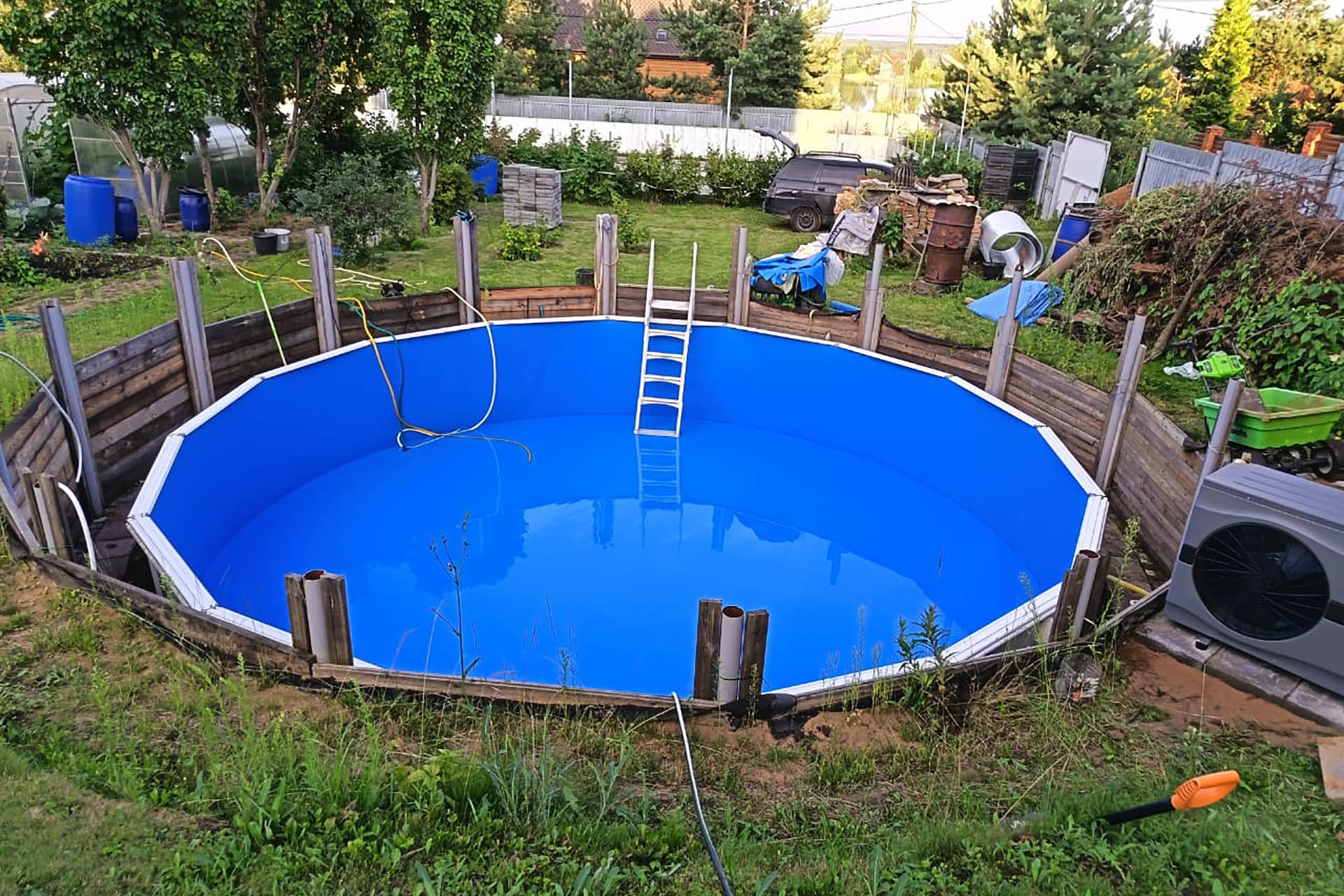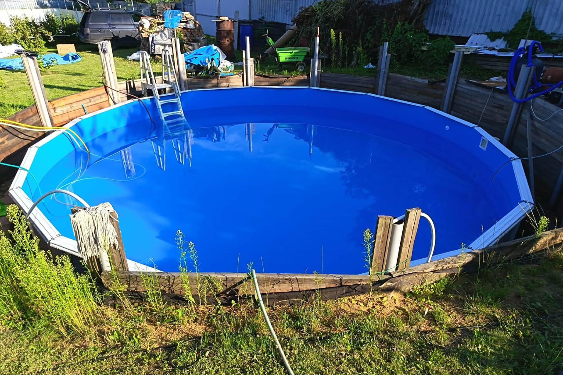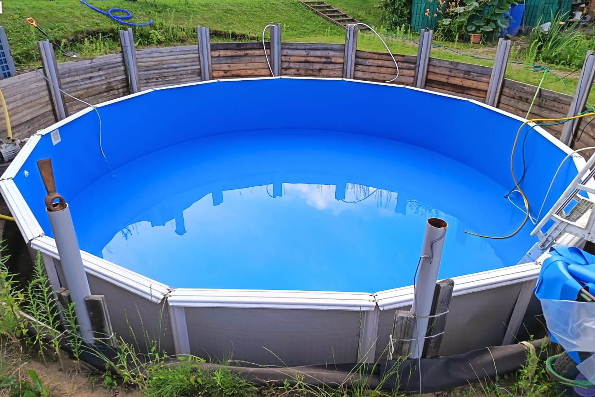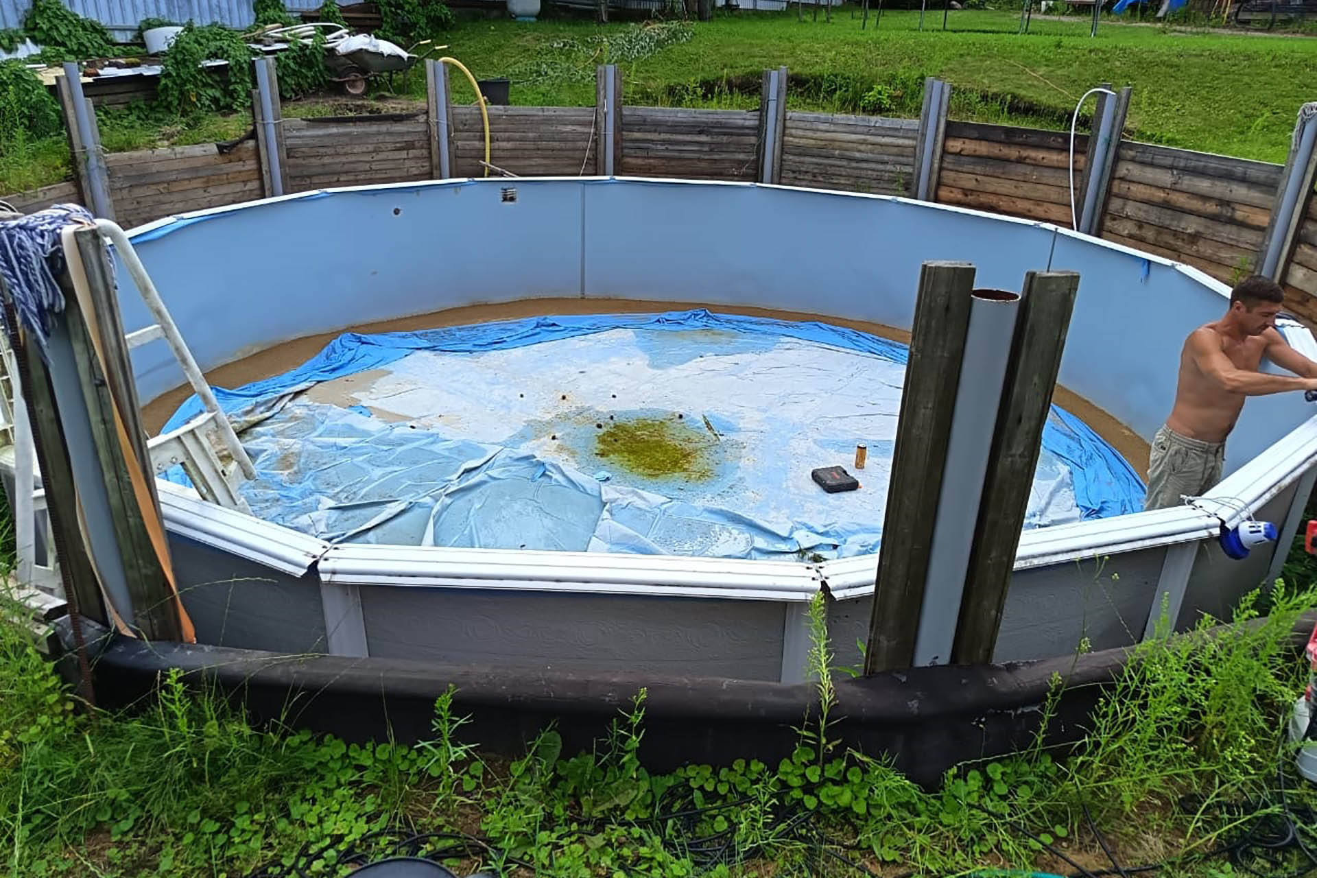 Отделка морозоустойчивого бассейна 7,3х1,32м пленкой ПВХ, синяя Dark Blue Китай FXT007DB (1,65х25м) (Солнечногорский р-н, д. Тимоново)